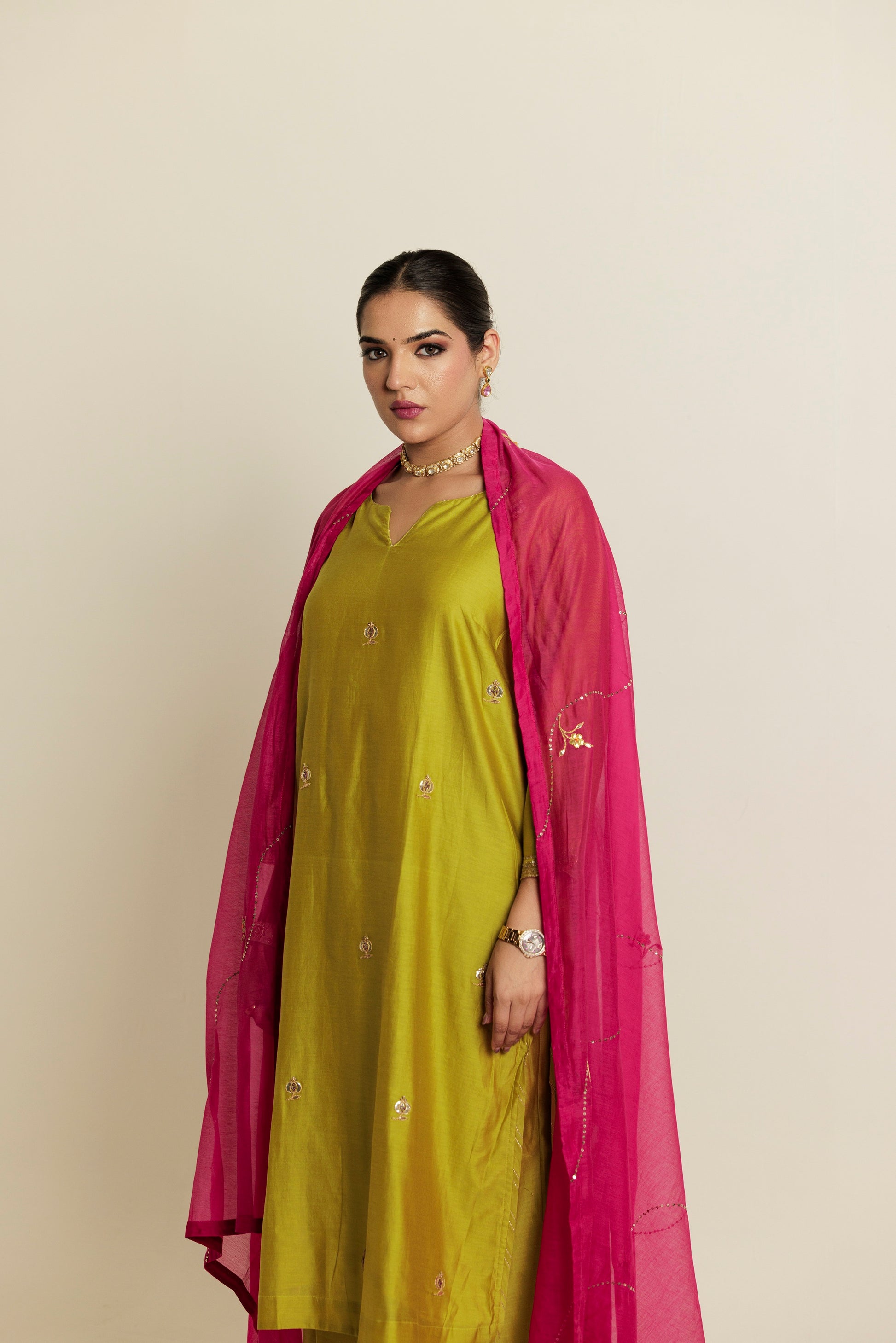 Green Hand Embroidered Aari-Zardozi Chanderi Kurta Set