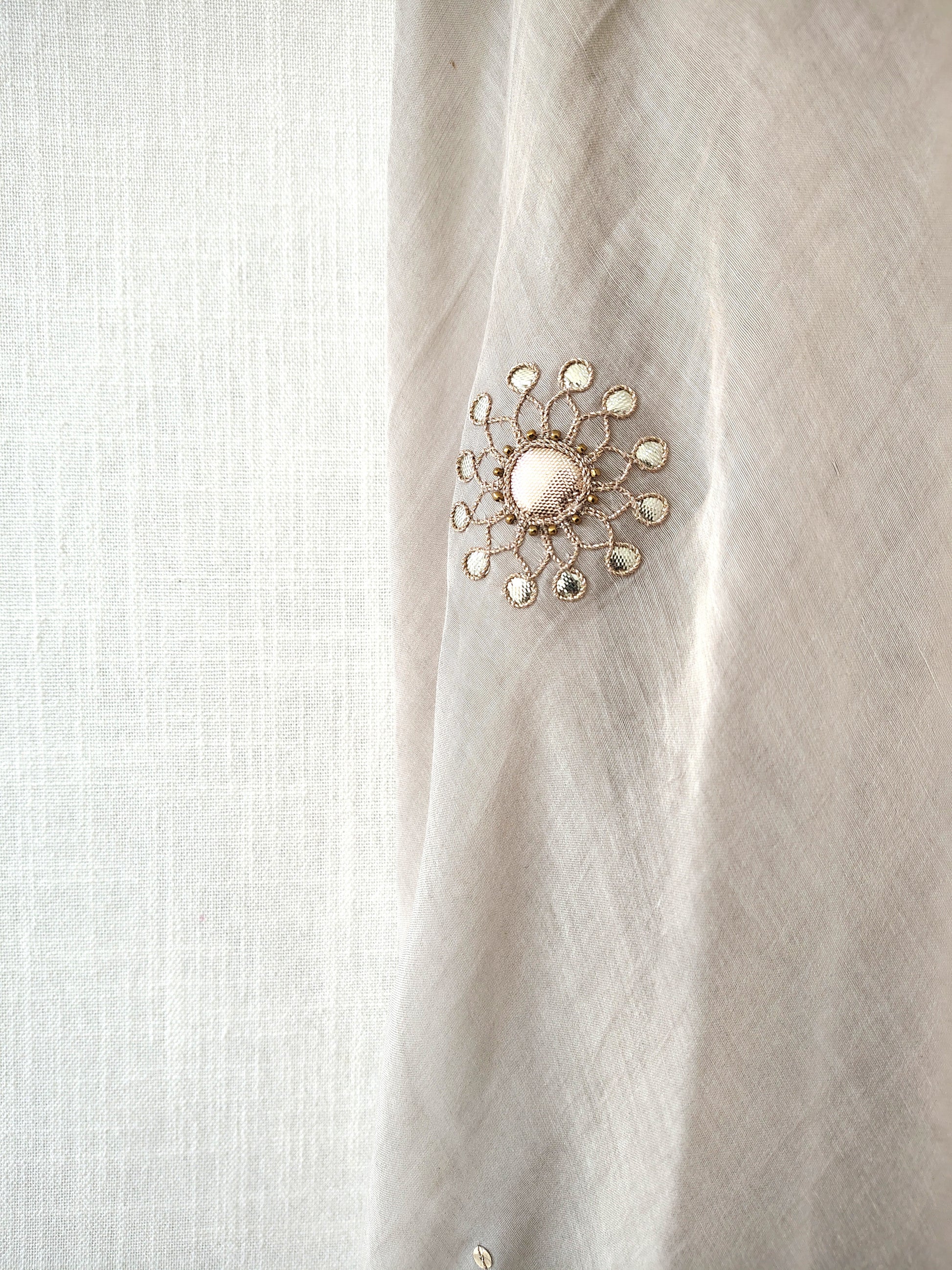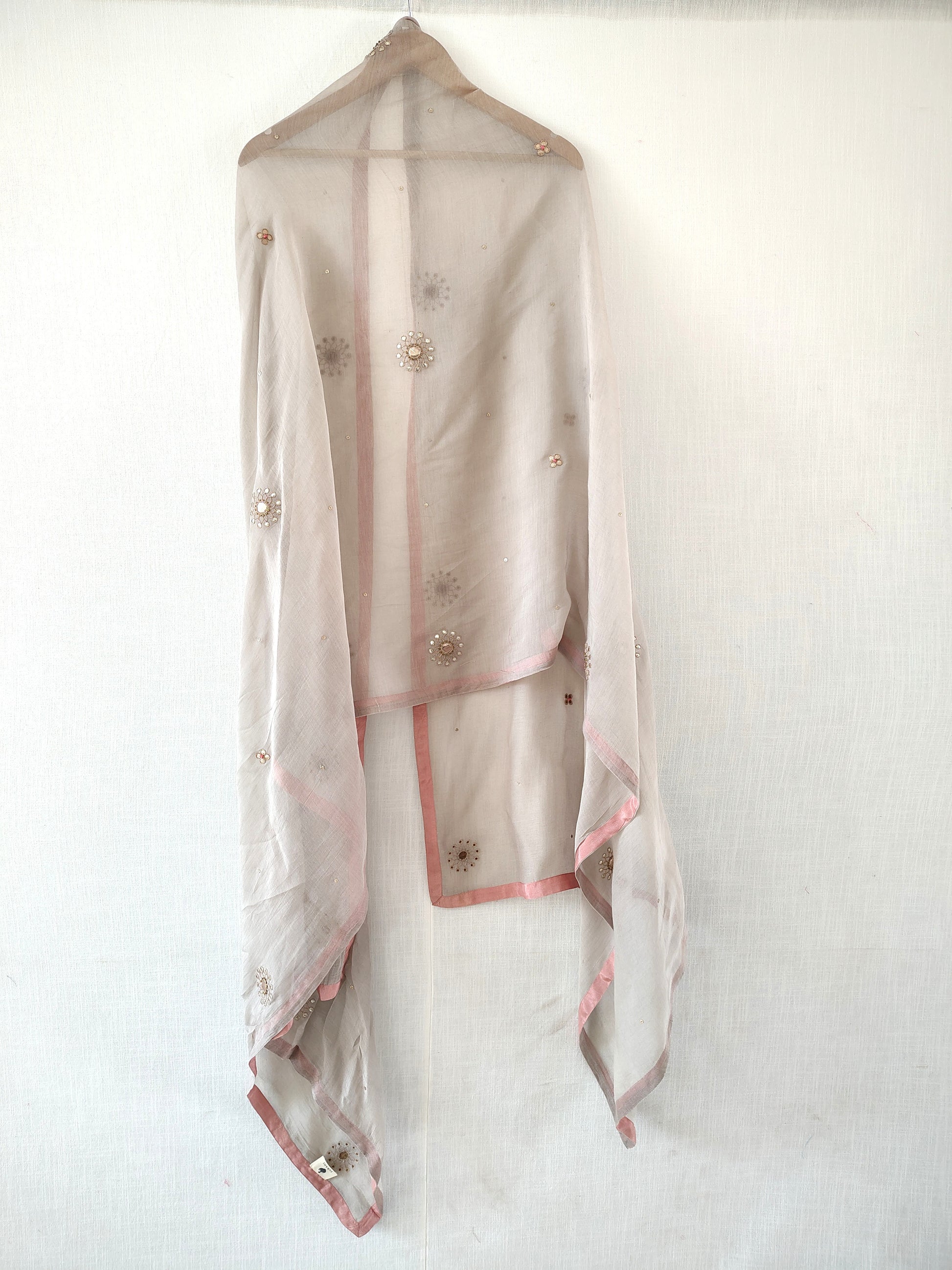 This cotton silk dupatta with delicate gold gota-patti embroidery, It has floral gota work all over. Wrap around this astounding piece and grace your favourite occasion. The beautiful and intricate gota work showcases the precision and perfection with which the artisans have worked on this elegant beauty.
