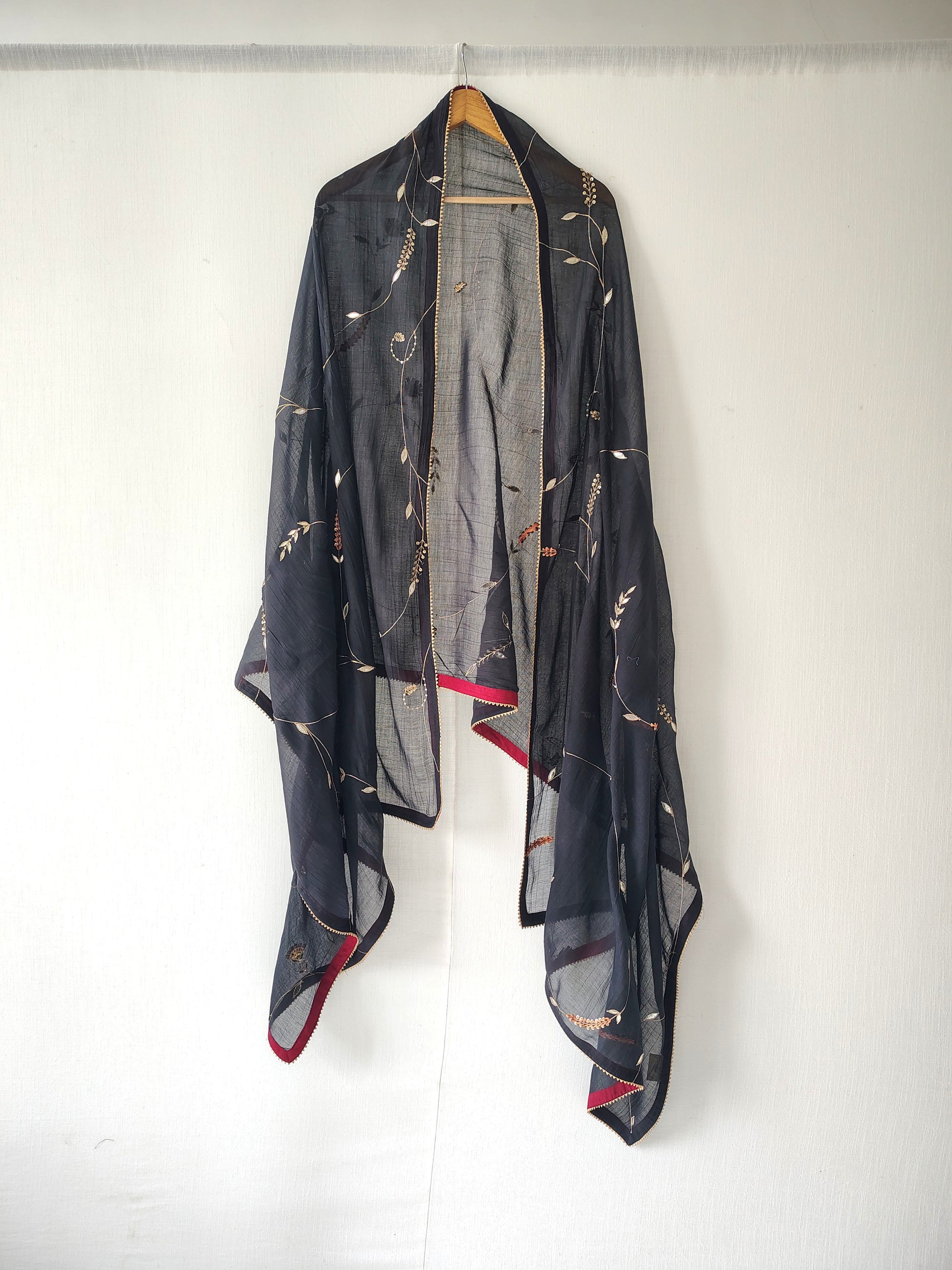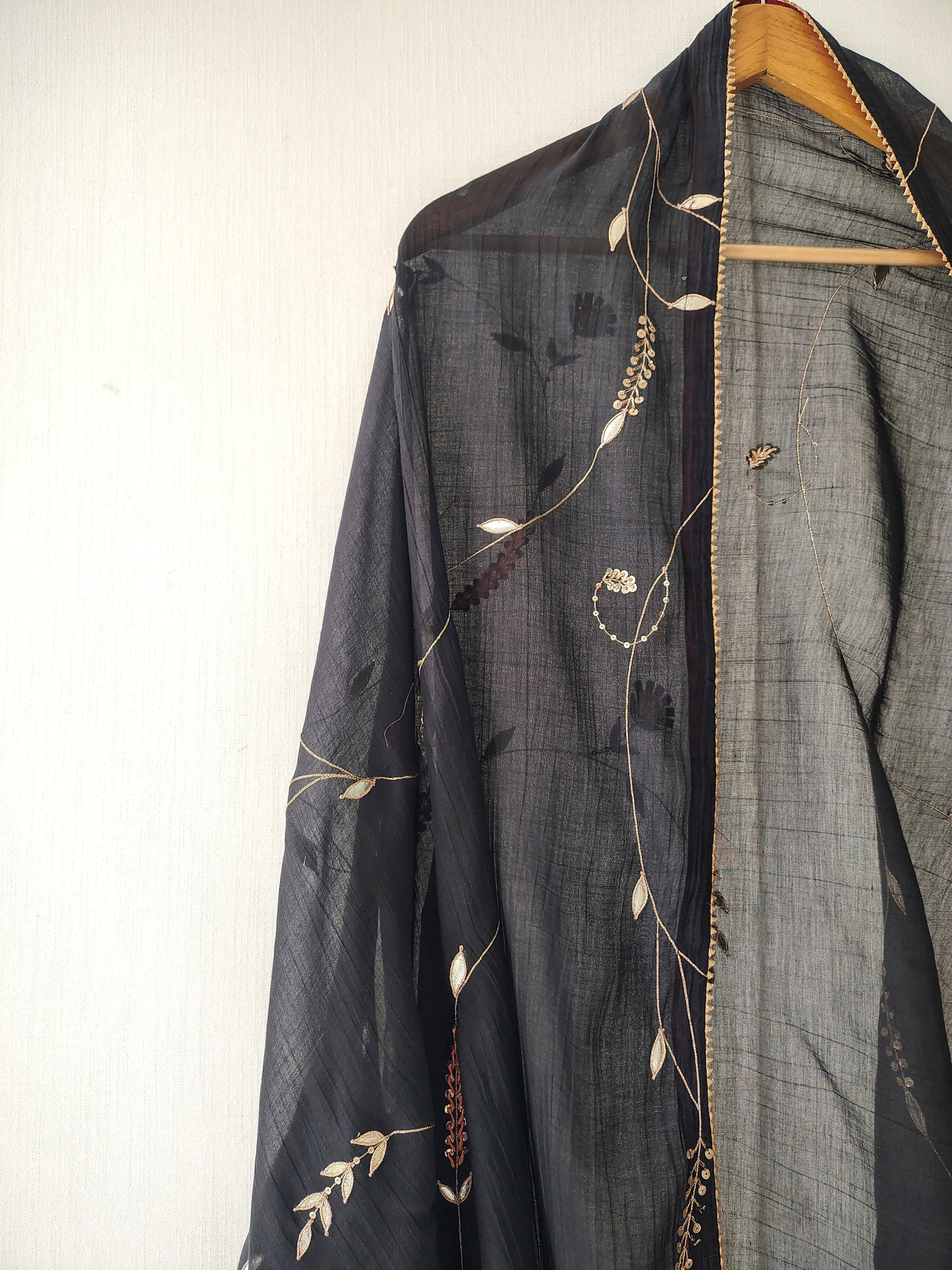 Ivory Hand Embroidered Gota Jaal Chanderi Dupatta