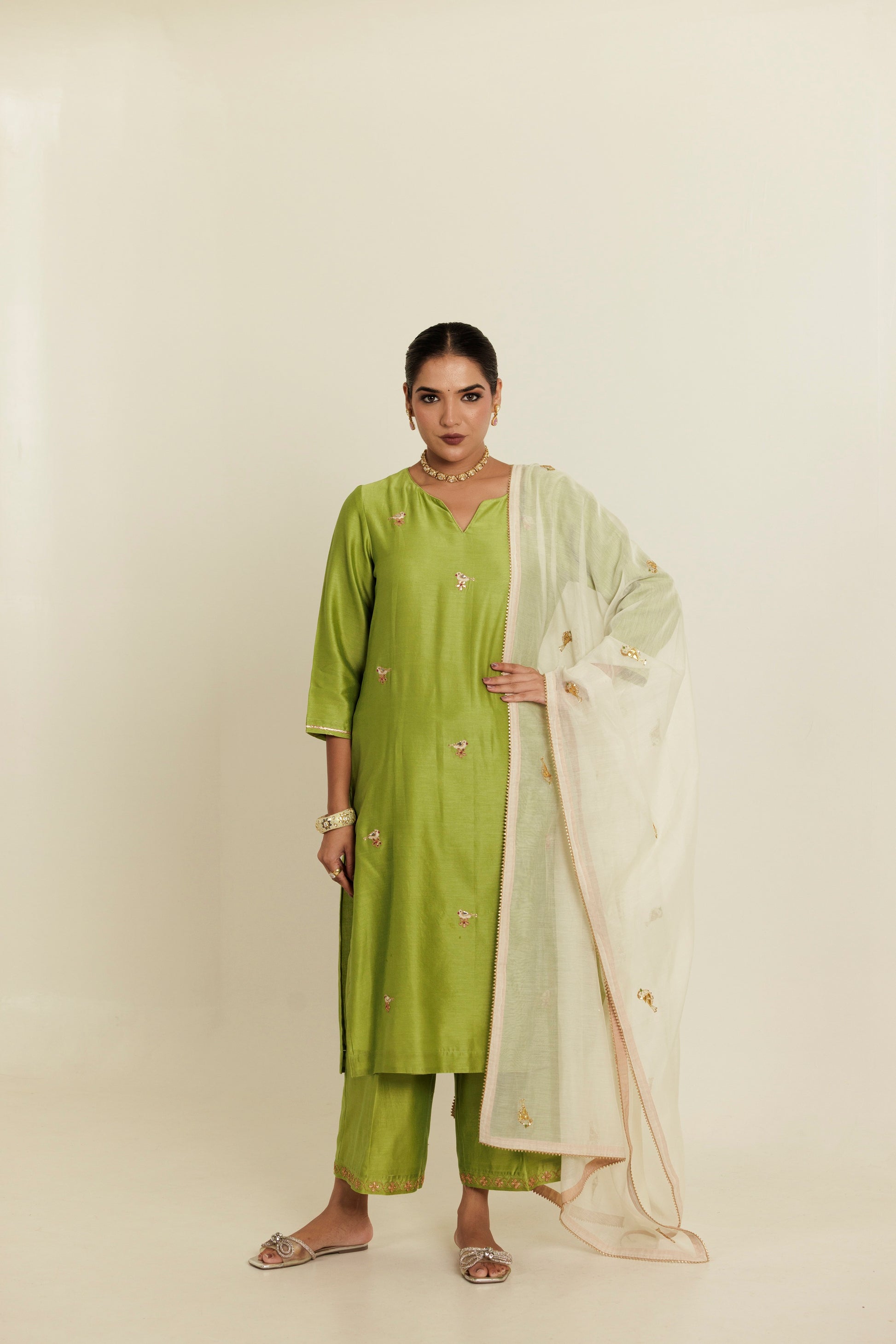 White Gold Chidiya Gota Patti Chanderi Dupatta